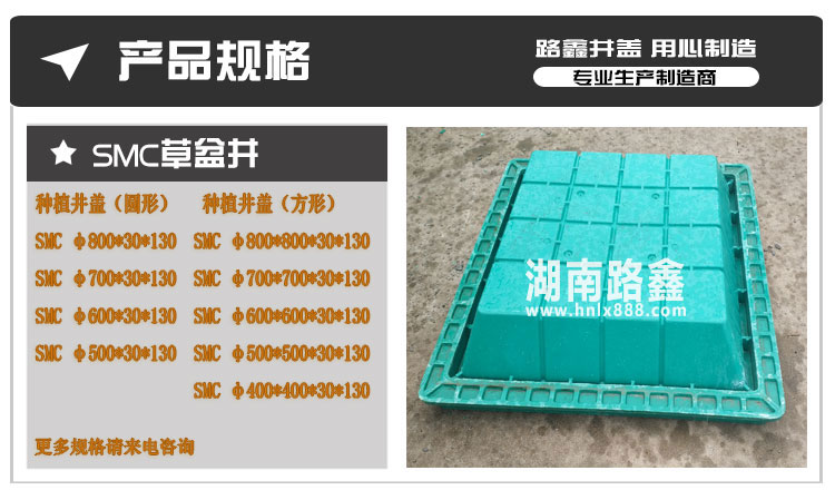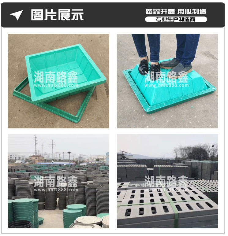湖南路鑫交通设施有限公司是一家集研发、生产、销售以及物流配送于一体的大型建材企业,公司目前主导产品有:球墨铸铁井盖、复合树脂井盖、不锈钢井盖、公司定位于生产中高端井盖、盖板系列。产品规格全、品种多、产量大、性价比高。 我公司生产的产品-球磨铸铁井盖 , 复合井盖 , 水沟盖板,具有强度高、硬度高、承重好、抗腐蚀、抗老化、美观防盗等优点,适用于市政道路项目以及房地产项目。