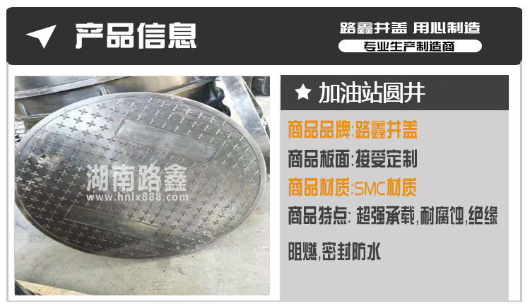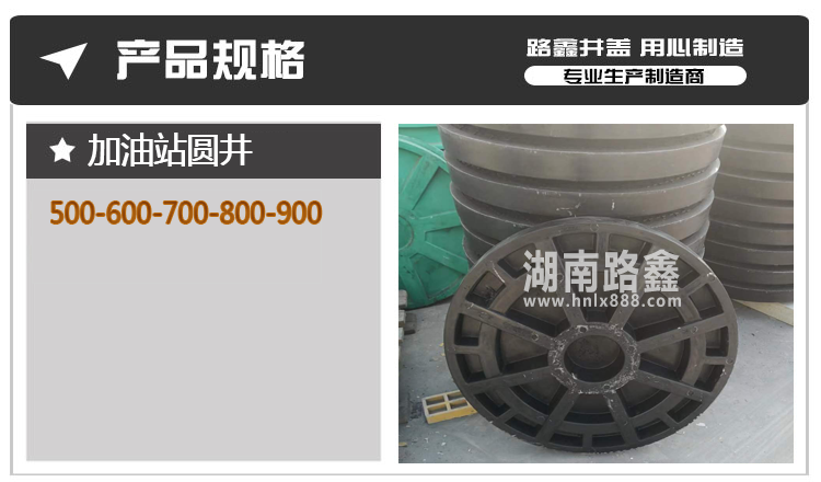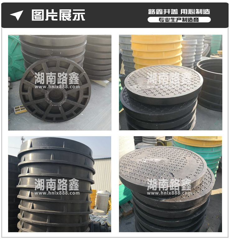 湖南路鑫交通设施有限公司是一家集研发、生产、销售以及物流配送于一体的大型建材企业,公司目前主导产品有:球墨铸铁井盖、复合树脂井盖、不锈钢井盖、公司定位于生产中高端井盖、盖板系列。产品规格全、品种多、产量大、性价比高。 我公司生产的产品-球磨铸铁井盖 , 复合井盖 , 水沟盖板,具有强度高、硬度高、承重好、抗腐蚀、抗老化、美观防盗等优点,适用于市政道路项目以及房地产项目。